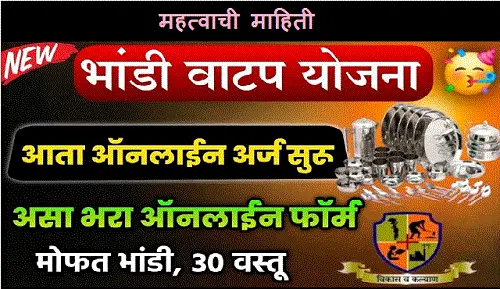 या योजनेमध्ये सरकार एकूण 30 गृह उपयोगी भांड्यांचा संच पूर्णपणे मोफत देते. या संचामध्ये मिळणाऱ्या वस्तू जसे की ताट-4, वाट्या-8, पाण्याचा ग्लास-4, पातेले (झाकणासह)- 3, भातवाडी (भात वाढण्यासाठी)- 01, मोठा चमचा (वरण/भाजी वाढण्यासाठी)- 01, पाण्याचा जग (2 लिटर)- 01, मसाल्याचा डब्बा (7 कप्प्याचा)- 01, तीन डब्याचा सेट (14,16 व 18 इंच)- 03, परात- 01, कुकर (5 लिटर स्टील)- 01, कढई(स्टीलची)- 01, स्टीलची पाण्याची टीप- 01