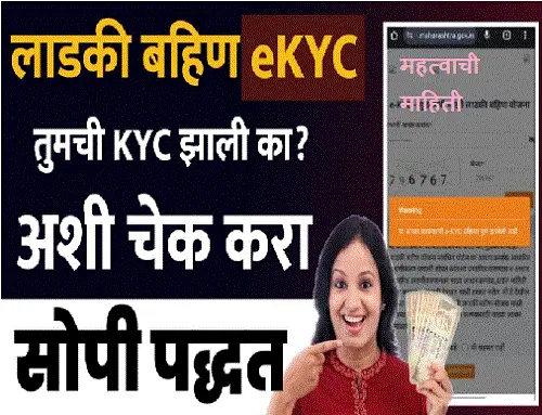 लाडकी बहीण योजनेतील सर्व पात्र लाभार्थी महिलांना ई-केवायसी करणे अनिवार्य करण्यात आलेले आहे. या योजनेची तुमची ई-केवायसी प्रक्रिया झालेली आहे की नाही? हे तुम्ही तुमच्या मोबाईल मधून चेक करू शकता व सर्वात महत्त्वाचे म्हणजे सर्व लाडक्या बहिणींना पुढील दोन महिन्यांमध्ये ई-केवायसी प्रक्रिया पूर्ण करणे बंधनकारक आहे. तरच या योजनेचा लाभ सुरू राहणार आहे. चला तर मग सदर लेखातून जाणून घेऊया.