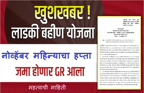 नमस्कार, आपल्या सर्वांचे महत्त्वाची माहिती या चॅनेलवरती स्वागत आहे. आज आपण सदर लेखातून लाडक्या बहिणींसाठी आनंदाची बातमी घेऊन आलेलो आहोत. नोव्हेंबर महिन्याचा हप्ता हा लवकरच लाडक्या बहिणींच्या बँक खात्यात जमा होणार आहे. भरपूर दिवस झाले तरी काहीही अपडेट किंवा जीआर येत नव्हता. परंतु आता लाडकी बहीण योजनेचा निधी वितरणाचा जीआर आलेला आहे. चला तर मग जाणून घेऊया नोव्हेंबर महिन्याचा हप्ता कधी जमा होणार आहे? व तो कोणा कोणाला मिळणार आहे? याबद्दलची माहिती.