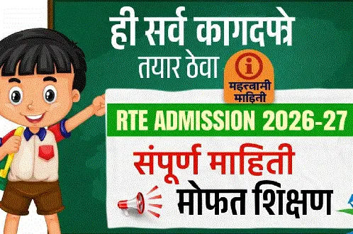आता लवकरच RTE अॅडमिशन 2026-27 सुरू होणार आहे. RTE अॅडमिशन म्हणजे राईट टू एज्युकेशन. यामध्ये प्ले ग्रुप, नर्सरी पहिली इत्यादी वर्गामध्ये कोणतीही फी न घेता मोफत प्रवेश देण्यात येतो. यासाठी 25 टक्के जागा राखीव असतात. यामध्ये लॉटरी लागत असते व त्या लॉटरी मधून प्रवेश निश्चित केला जातो. काही दिवसांमध्येच याची अॅडमिशन प्रक्रिया सुरू होणार आहे. चला तर मग सदर लेखातून जाणून घेऊया यासाठी कोणकोणती कागदपत्रे लागणार आहेत.